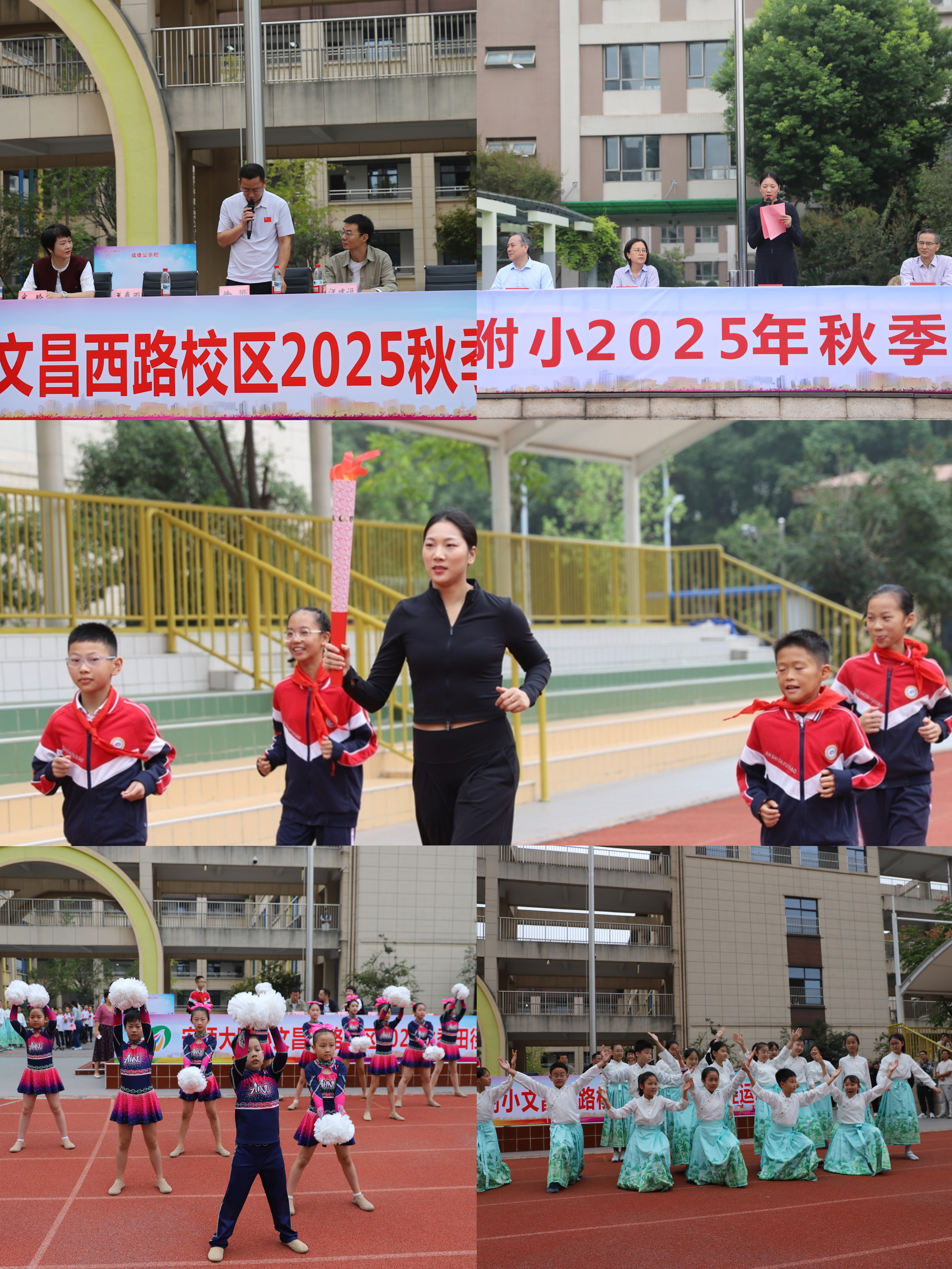 两校区运动会开幕式于10月15日上午8时20分同步拉开帷幕。本次开幕式邀请了中国女子田径名将王春雨参加。首先,学校领导与全体师生庄严肃立,齐声高唱国歌。在雄壮的国歌声中,五星红旗冉冉升起。升旗仪式结束后,附小党委副书记茆家祥和副校长宋玲分别在两校区致开幕词;王春雨致辞后带领学生进行了“火炬传递,精彩第一跑”;精彩的社团表演激起师生掌声不断;最后,附小党委书记张如华和校长徐赟分别在两校区宣布“安徽师范大学附属小学2025年秋季田径运动会正式开幕!”