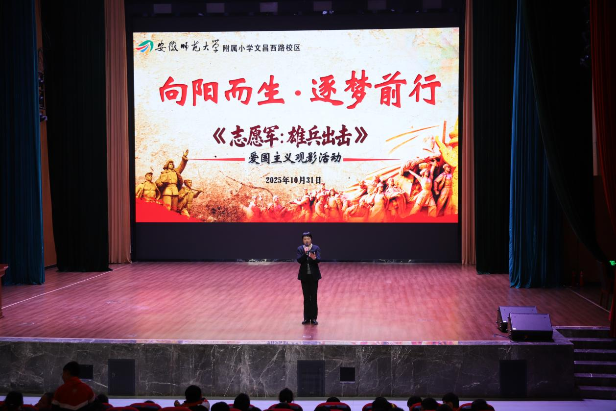 为深化爱国主义教育,引导青少年铭记革命历史、传承红色基因,10月31日,安师大附小文昌西路校区组织四至六年级全体同学集中观看爱国主义题材电影《志愿军——雄兵出击》。同学们在光影中回望峥嵘岁月,在感动中汲取奋进力量,接受了一场深刻的精神洗礼。