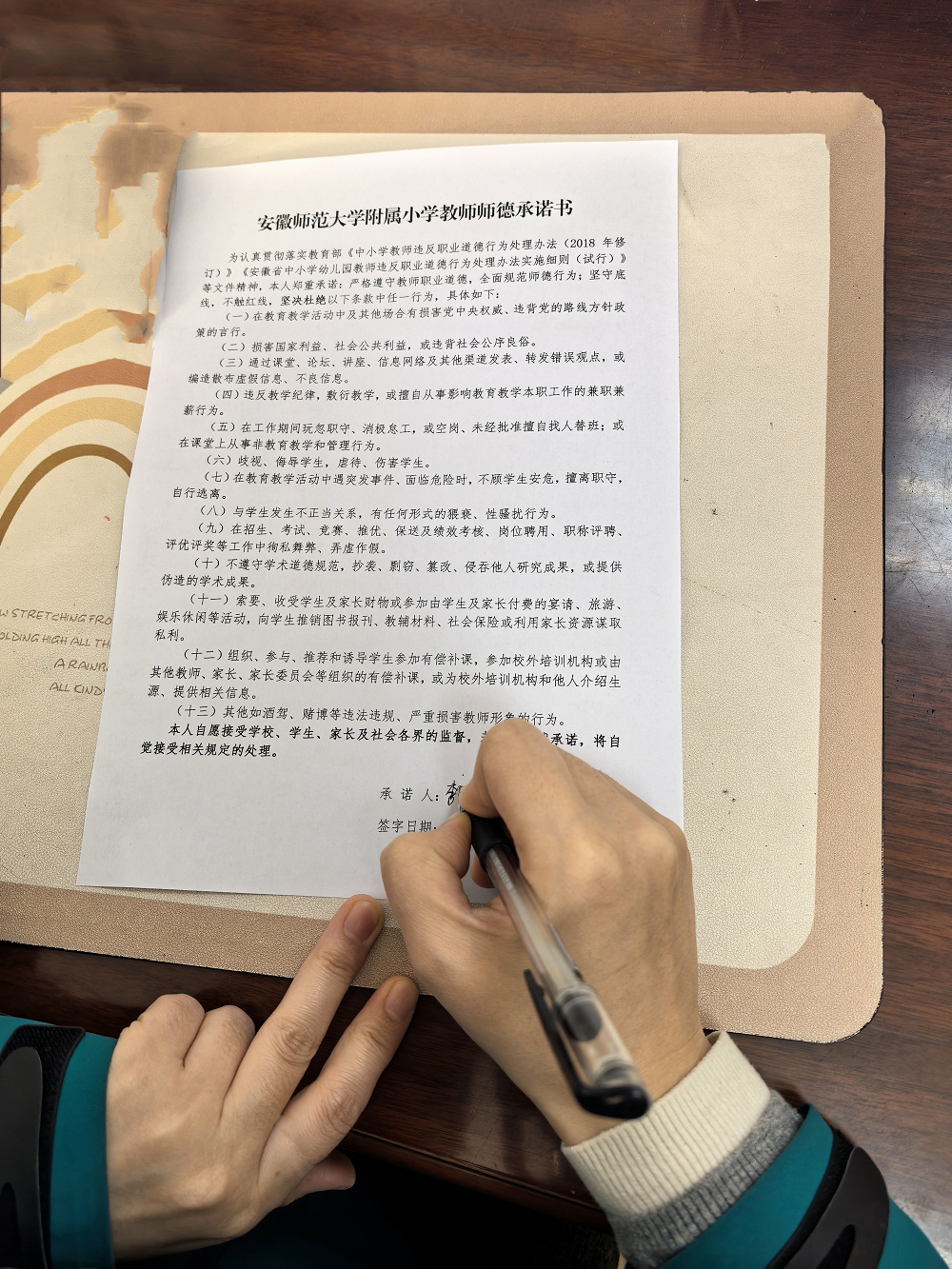 会后,全体教师签订了《附属小学教师师德承诺书》。