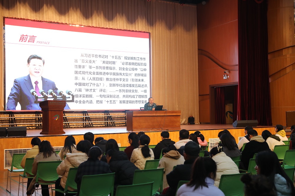 第二阶段,党委副书记茆家祥带领全体教师学习党的二十届四中全会精神,他从会议内涵、“十四五”取得成就、会议擘画未来蓝图、如何贯彻落实会议精神等方面进行解读,强调要将全会精神融入教育教学,鼓励教师为学校“十五五”规划建言献策,共同谋划学校未来五年发展。随后,他详细部署了素质教育开放周有关工作,对家长会、小商品交易会等工作提出了要求。
