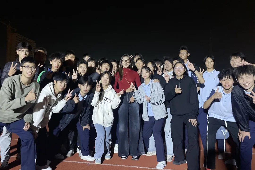 △ 体育冠军王春雨走进蚌埠市五河一中,与体育特长生在一起