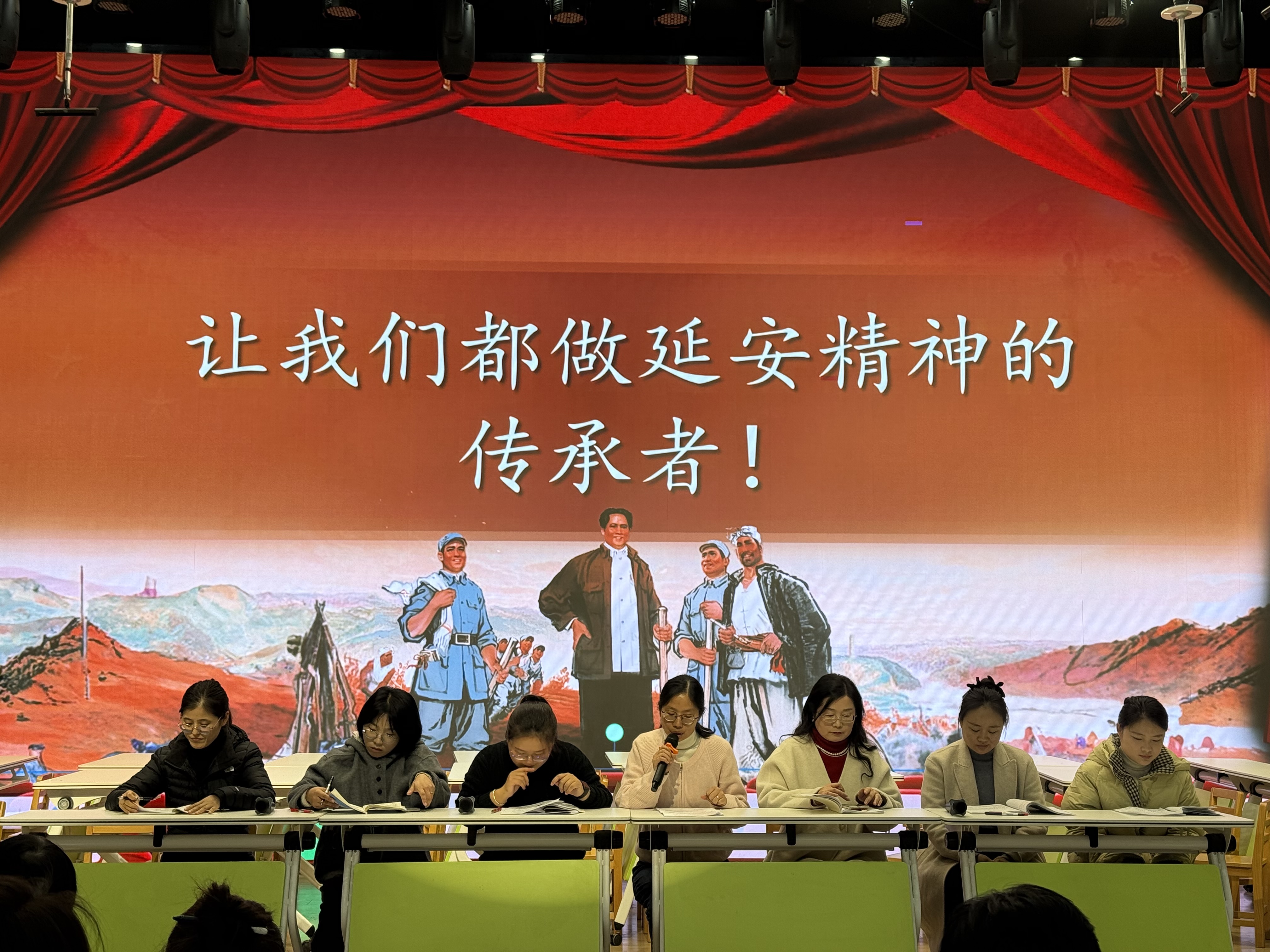 课后,两位执教教师分享教学设计思路。叶喜娟老师围绕“民族气节与家国情怀”的核心目标,深入阐述了略读课文方法运用与知行统一的教学构想;李妍霖老师则详细介绍了“读感韵律—交流资料—感悟精神”的教学流程,着重强调通过情感沉浸策略,助力学生深化对延安精神的理解与认同。