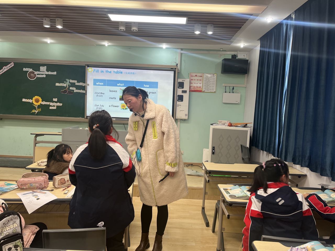 第一节课由文昌西路校区的苏婷婷老师执教Period 1 Parts of the plants。整节课苏老师设计了丰富的教学活动。在扮演果实的情境里,学生们大胆展现自我,积极表达;在Retell环节,学生们跟着老师的指令边做动作边表达,参与度拉满。Chant环节更是让学生在欢快的韵律中巩固了知识点。课堂最后,苏老师带着学生们一起梳理植物果实、种子孕育新植株的循环过程,让学生在掌握英语知识的同时,领略到植物生长的神奇。整节课,学生始终以饱满的热情参与活动,于观察、思考与互动中扎实掌握了语言知识,展现出优异的学习与探索能力。