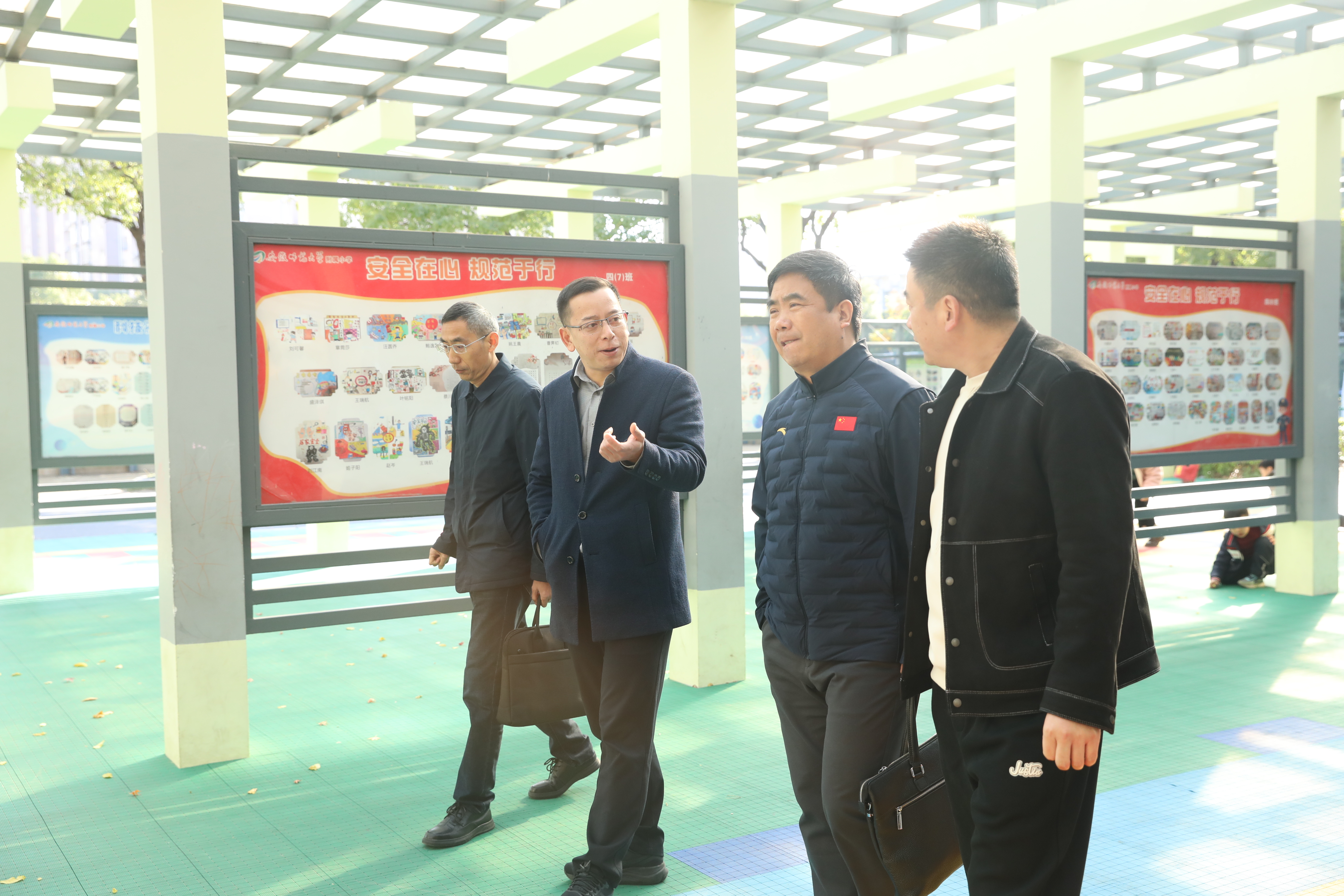 活动伊始,校长徐赟和总务处梁华军老师带领刘建校长参观了校园。梁老师介绍了学校办学历史、硬件升级、文化建设成果。从劳动教育基地“半亩园”、恐龙科学园到创意园文化长廊,处处彰显对学生全面发展的重视。刘建校长对学校育人氛围、精细管理及特色文化高度评价。