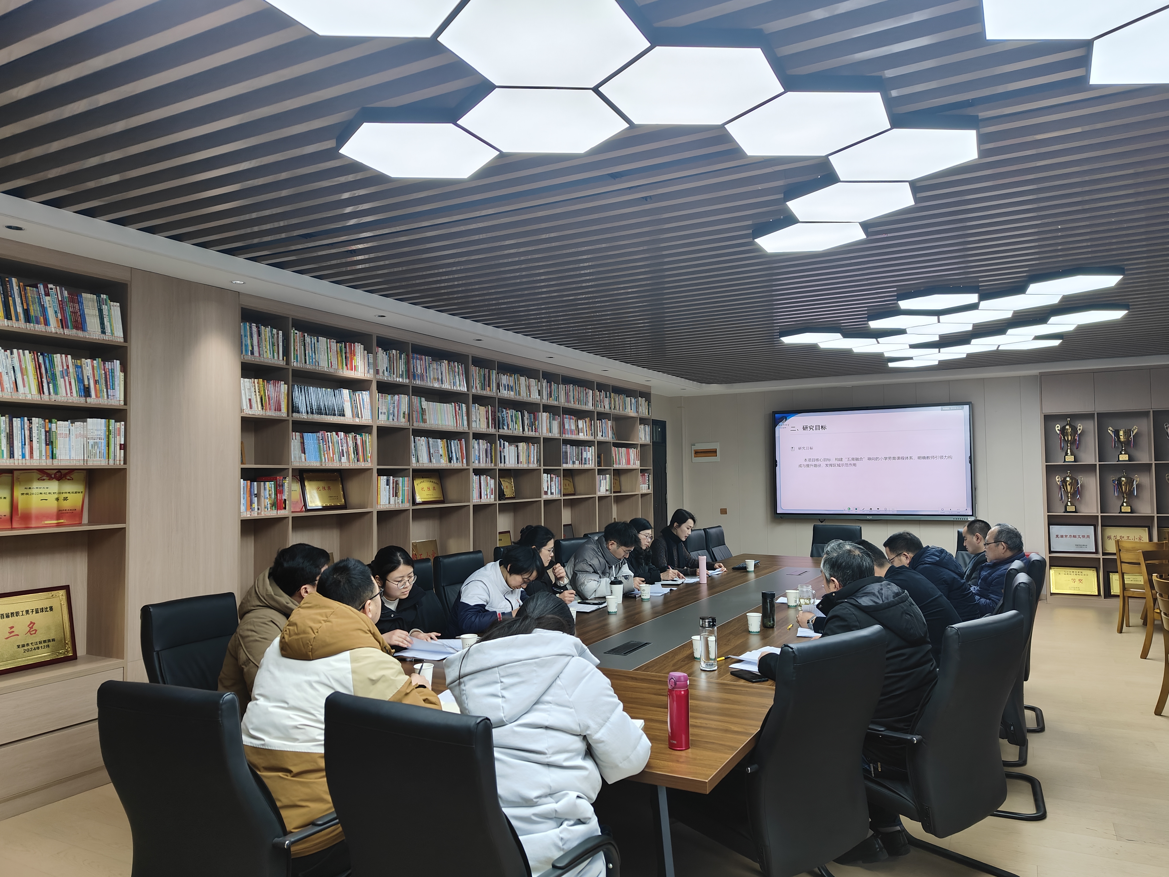 开题论证环节,两项研究的主持人依次围绕研究内容进行详细阐述。张璇老师就芜湖市教育高层次人才项目《“五育融合”视域下小学劳动教育课程系统性构建及教师引领力提升研究——基于“文化性劳动”的校本实践探索》,立足新时代“五育融合”的核心育人目标,直指当前小学劳动教育实施中普遍存在的“知易行难”“融合不合”“师能不足”三大深层次痛点。她从立项依据、研究方案、研究基础、预期成果等方面系统汇报,明确本项目旨在构建一套理论与实践相结合的“课程-教学-师训”一体化解决方案,通过校本实践,让劳动教育真正融入育人全过程,同时提升教师在劳动教育中的引领能力,破解劳动教育与其他学科割裂、落地乏力的难题。