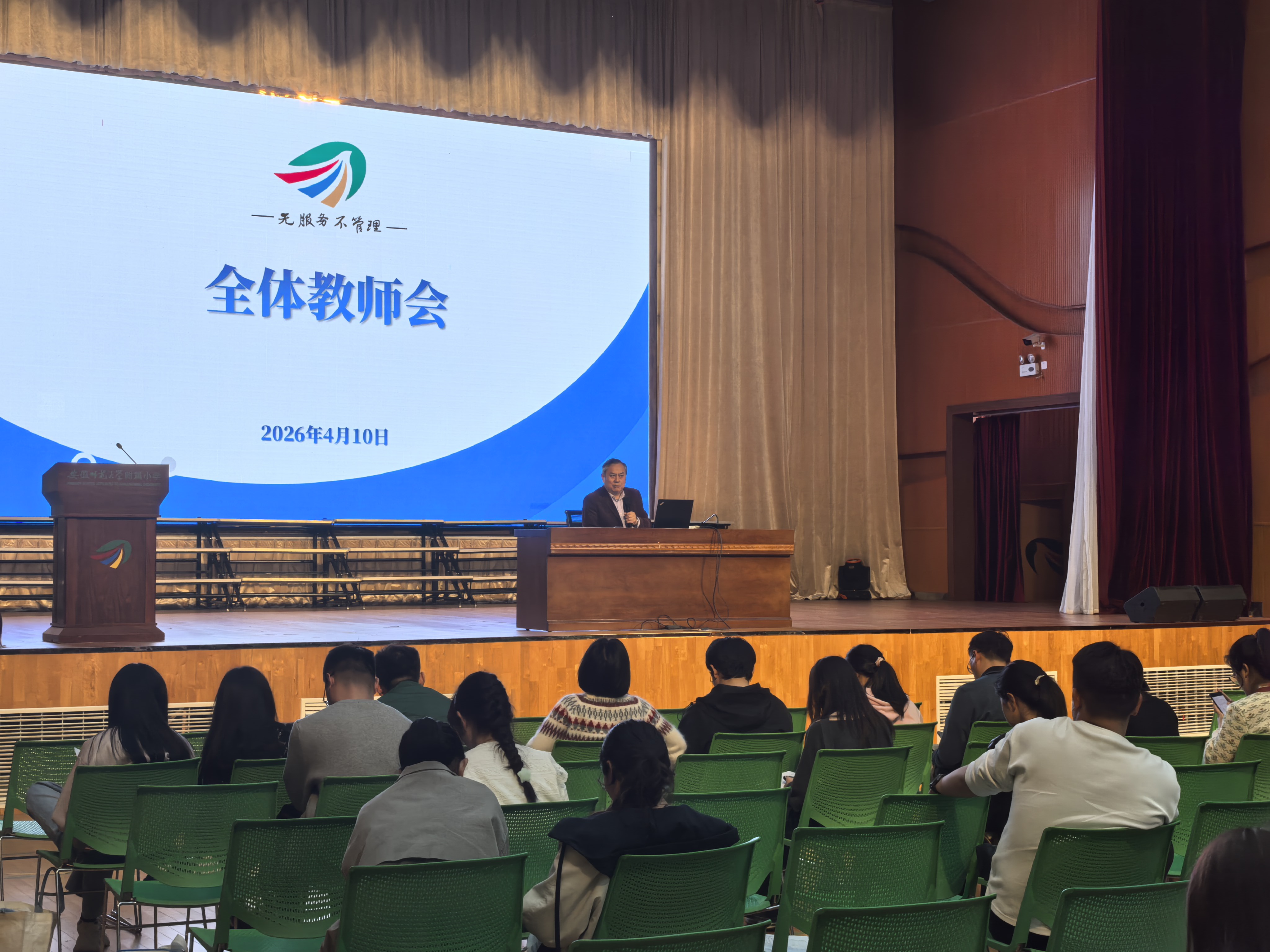 为深入学习贯彻2026年全国两会精神,全面落实立德树人根本任务,统筹推进学校各项工作提质增效,4月10日,附小召开全体教师会。会议由校党委书记张如华主持,全体教职工参会,集政治理论学习、干部述职评议、师德师风建设、重点工作部署、育人故事分享于一体,进一步统一思想、凝聚共识、明确方向。