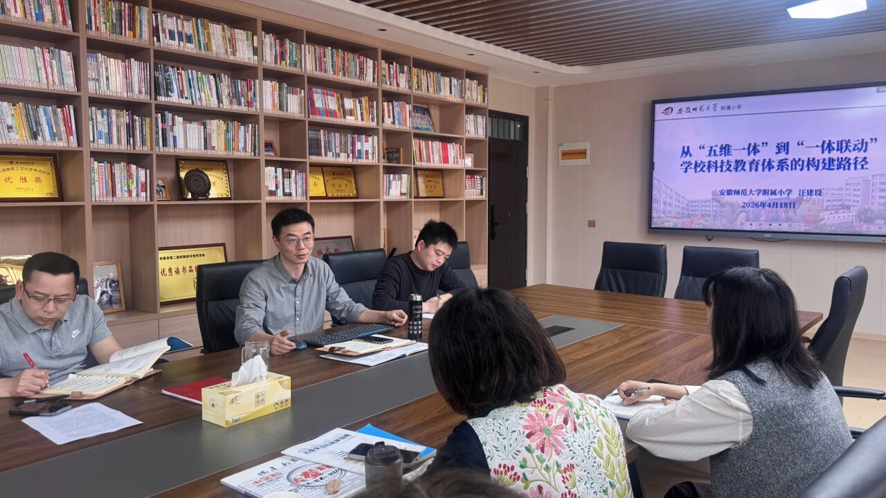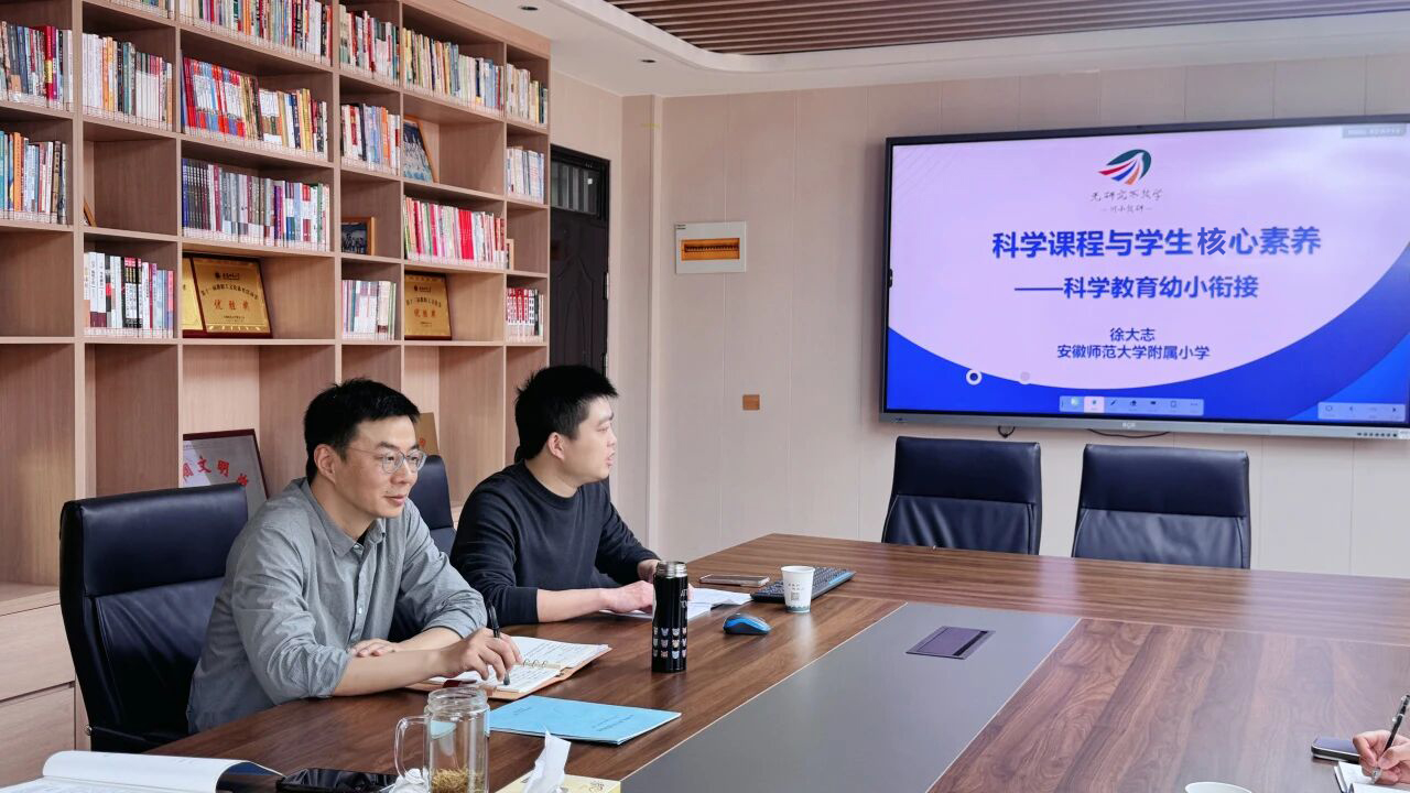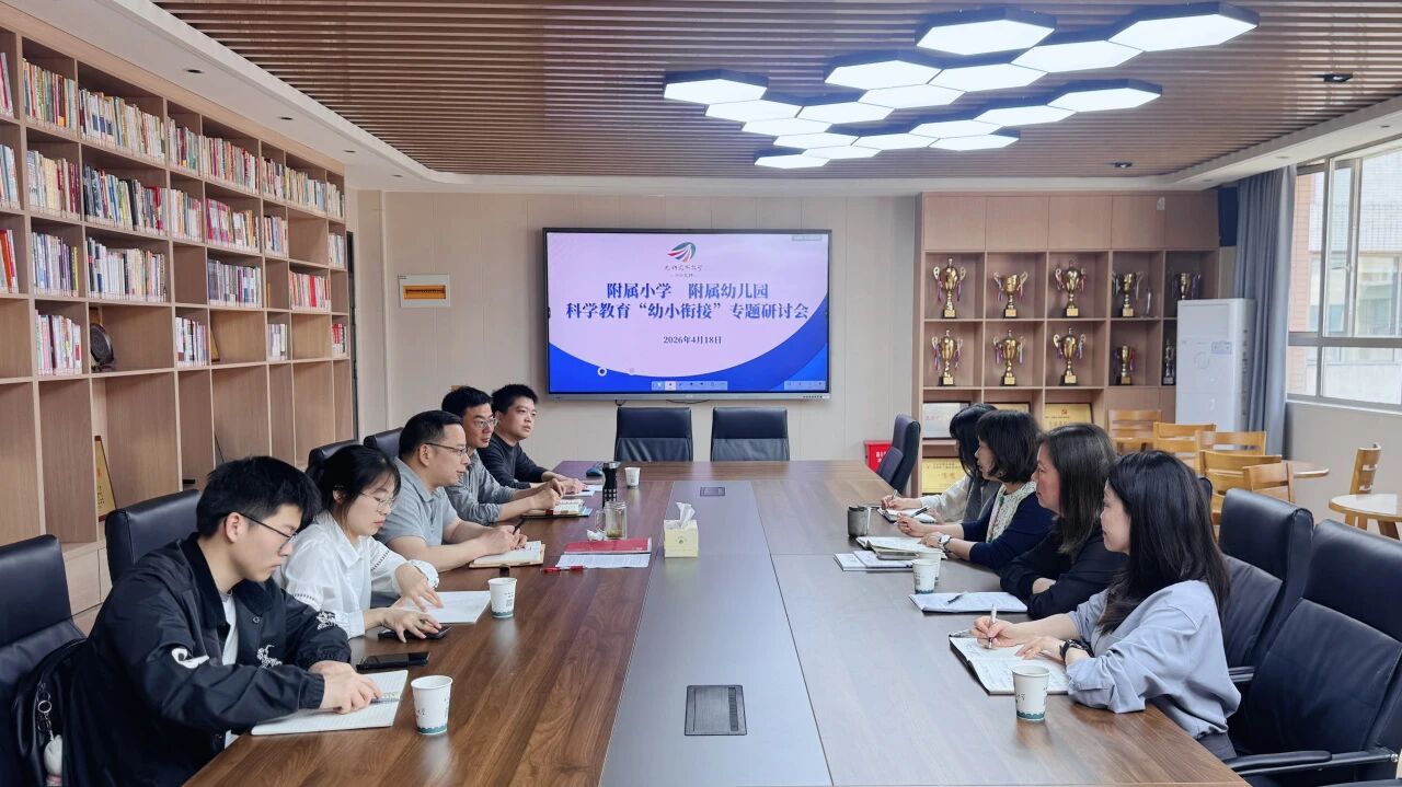 为深入贯彻落实教育部关于加强新时代科学教育及幼小科学衔接的相关要求,打破学段壁垒,凝聚育人合力,推动幼小科学教育协同发展,2026年4月18日下午,安徽师范大学附属小学与附属幼儿园科学教育“幼小衔接”专题研讨会在附小第二会议室召开,双方围绕幼儿园科学启蒙与小学低年级科学教育的有效衔接机制展开深入交流。附属幼儿园党总支书记徐晓蓉、教学园长汪红诚,附属小学校长徐赟、副校长汪建设、崇文分校副校长徐大志及两校课题组骨干教师代表参加会议。